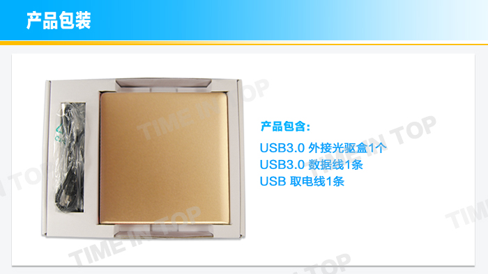金色铝合金 USB3.0外置蓝光/DVD光驱盒, 型号:TIT-A20